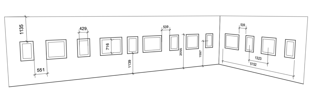 Teosvälilaskin laskee teosvälin ripustustilan ja teosten leveyden mukaan